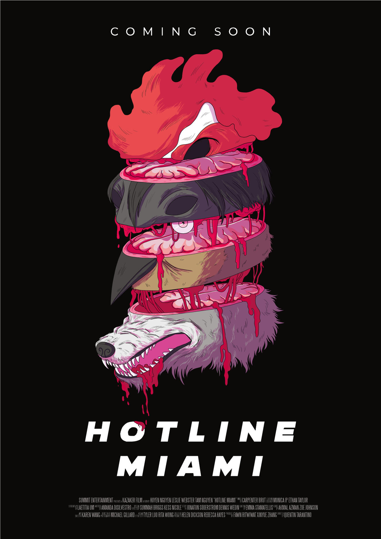 A project with Akmal, Tyler and Zoe for a motion graphics class where we created a fictional opening title sequence for a movie adaption to the game, Hotline Miami.Along with the opening title sequence, a poster and web banners were also created. Below is the movie poster that was created alongside the title sequence.Learn more about the project here.The Team: